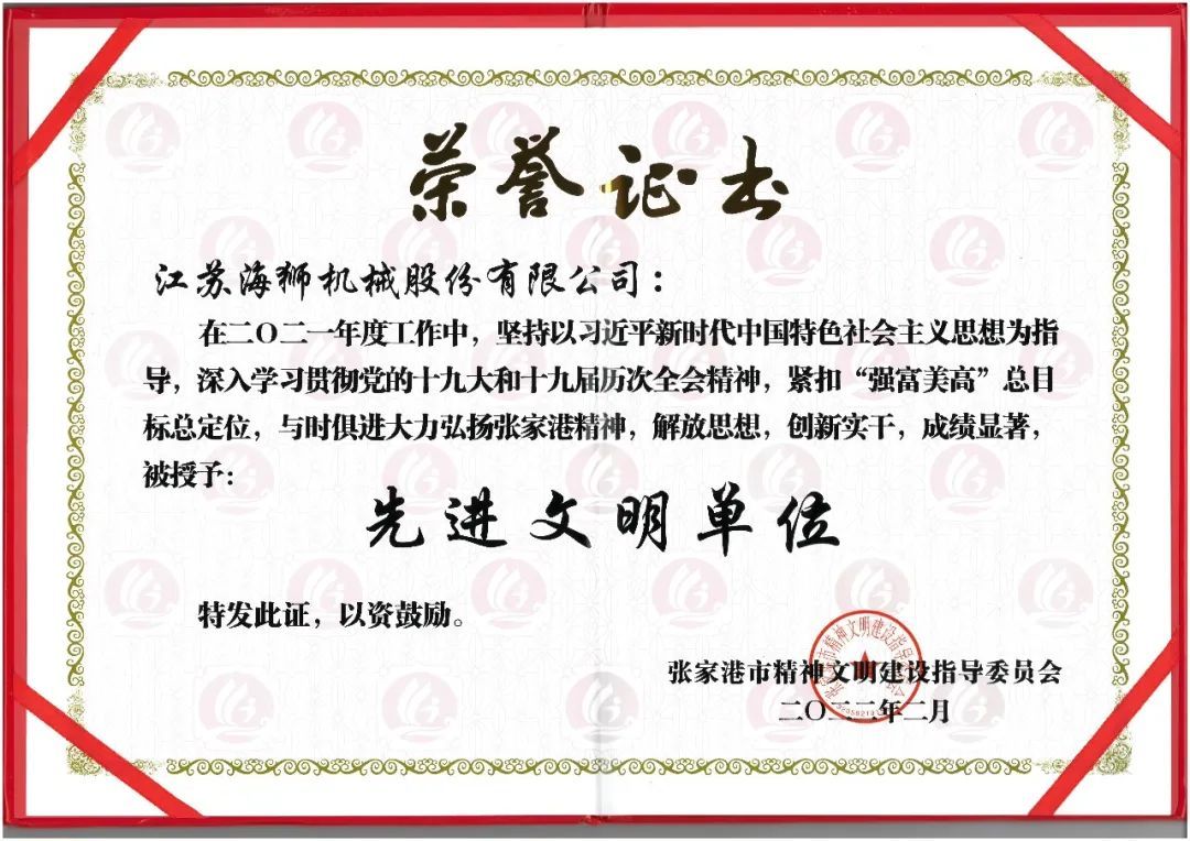 江蘇海獅機械榮獲張家港市“兩業(yè)融合”優(yōu)秀試點企業(yè)